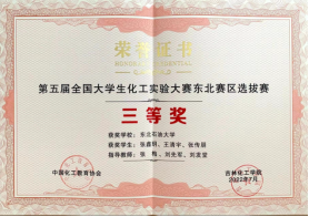 2022年7月1日至4日,由教育部高等学校化工类专业教学指导委员会、中国化工教育协会主办,吉林化工学院承办的第五届全国大学生化工实验大赛东北赛区选拔赛,在吉林市成功举办,来自东北地区的34支队伍参加比赛。我院化工专业学生杨楠,王晓容,韩永正组成参赛团队,在刘先军,张梅等老师的指导下,经过激烈角逐,荣获全国大学生化工实验大赛东北赛区一等奖。此次比赛我院共取得赛区一等奖1项,三等奖1项;省赛特等奖1项,一等奖1项,三等奖2项,优秀奖6项。