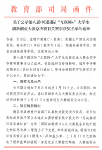 近日,中国国际“互联网+”大学生创新创业大赛组织委员会公布的《关于公示第八届中国国际“互联网+”大学生创新创业大赛总决赛有关赛事获奖名单的通知》,我院化工专业张梅老师指导、崔喜雯同学负责的“靓废智污—粉煤灰治污处理新纪元”;张曦光老师指导、杨楠同学负责的“秸秆做媒—净化油田含油污水秸秆基碳纳米材料”;环境工程专业袁瑞霞老师指导,张爽同学负责的“钴”全大局—全球首创过硫酸盐3D纳米催化剂宏量制备技术”;刘战剑老师指导、张宝双同学负责的“畅“涂”有你—新型仿生超疏水汽车涂料领航者”4个项目荣获国家级铜奖。这是我院参赛项目首次荣获此项赛事国家级奖项,实现历史新突破。