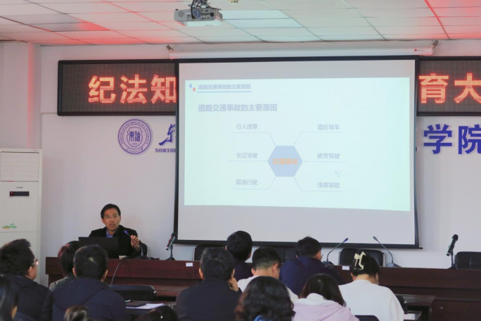 首先,陈彦广院长领学了《中华人民共和国道路交通安全法》,就道路交通事故主要原因、常见违法行为的危害、倡导的安全驾驶行为等内容进行了交流分享。他重点指出,广大教职工一定要汲取案件教训,坚决杜绝超速、超载、酒后驾车等违法行为的发生。