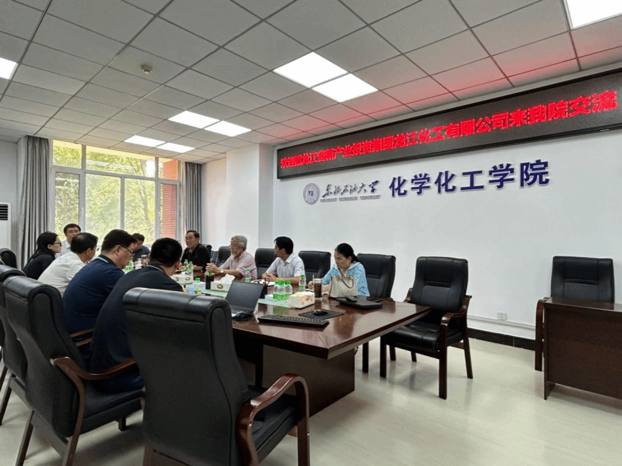 8月8日,黑龙江省新产业投资集团龙江化工有限公司董事长、党委书记刘烈威,总工程师贾长义,科技发展部副部长陈然,科技发展部战略规划岗张天宇一行四人莅临我院,与我院部分教师及专家学者就化工新材料及产业技术中的关键问题进行了深入的技术交流与合作探讨。此次交流旨在促进产学研深度融合,共同推动化工行业技术创新与产业升级。