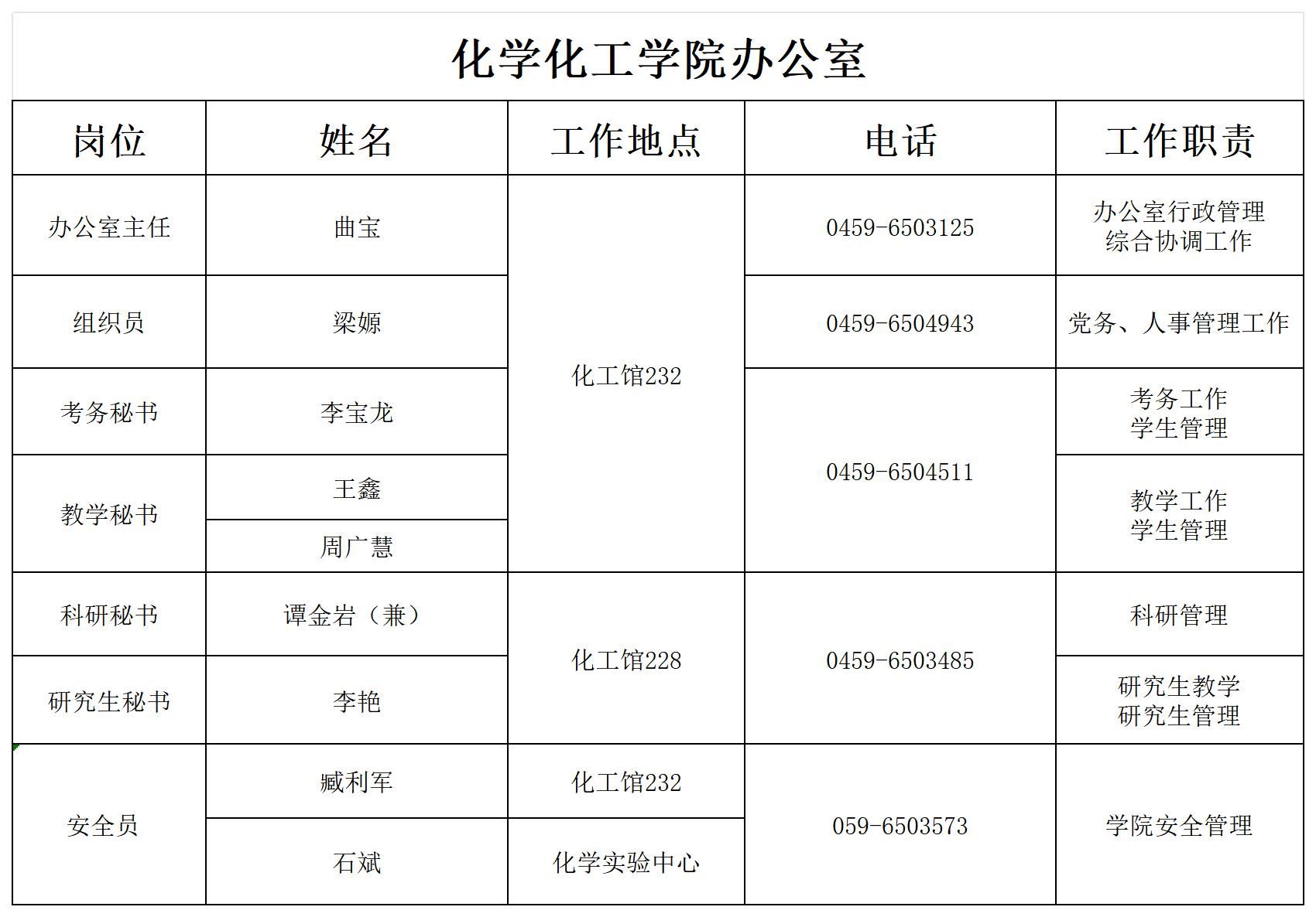 办公室基本信息(职责)一览表